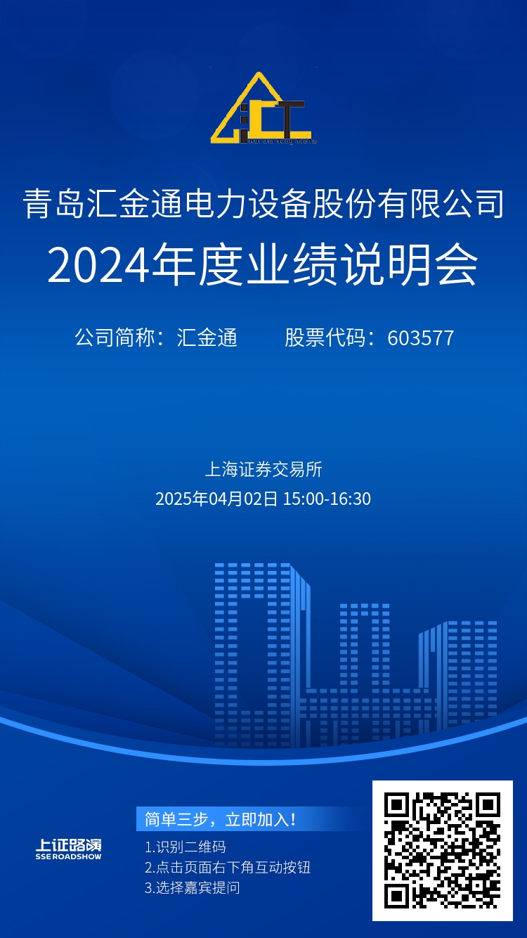 匯金通將于2025年4215:00-16:30舉行2024年度業績說明會,歡迎各位投資者對公司發展提出寶貴的意見、建議!