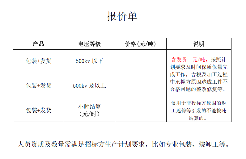 4、如因投標方特殊情況,經與人力資源部溝通后,可郵寄或送達至接收地址:梁鳳娟18100377087山東省膠州市鋪集鎮鞏家莊對面,青島匯金通電力設備股份有限公司(郵寄時務必備注好貴公司名稱+報價項目名稱,投標相關資料必須確保密封、完好無損)。