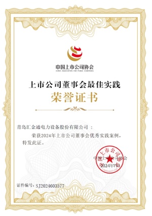 在中國上市公司協會“2024上市公司董事會實踐案例”評選中,匯金通榮獲“董事會優秀實踐案例”。