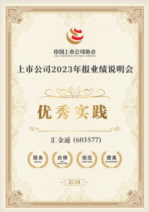 在中國上市公司協會“年報業績說明會實踐”評選中,匯金通連續兩年入選“年報業績說明會優秀實踐”。
