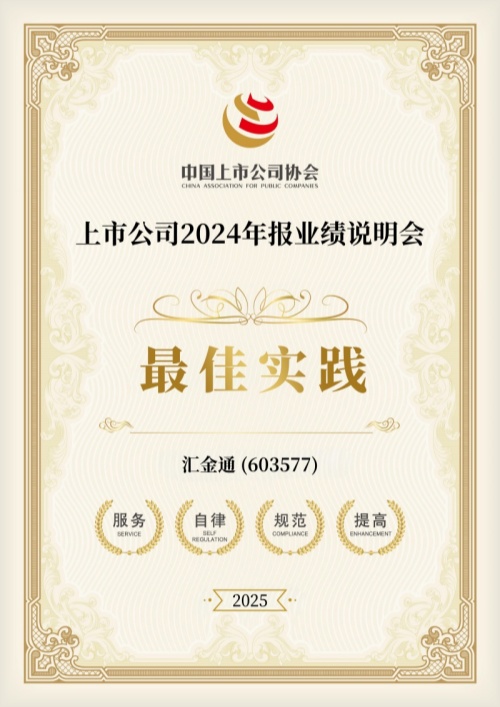 榮譽|匯金通榮獲“上市公司2024年報業績說明會最佳實踐”獎項